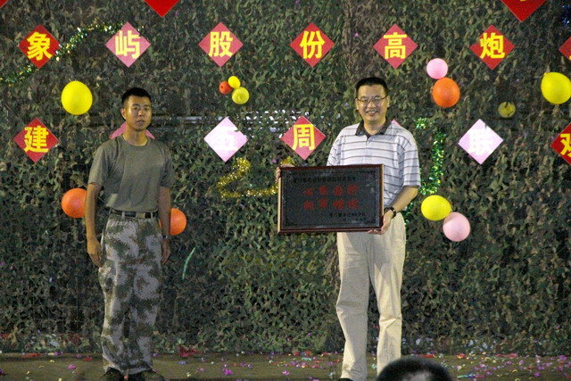 7月28日晚,象嶼股份部分高管及員工代表與高炮三連官兵相聚東坪山,舉行了雙擁共建十五周年暨“慶八一·軍民魚水情”聯(lián)歡晚會。