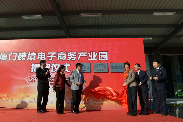 市委常委、統(tǒng)戰(zhàn)部部長(zhǎng)黃菱,副市長(zhǎng)張燦民為廈門跨境電子商務(wù)產(chǎn)業(yè)園揭牌,并見(jiàn)證了跨境電商出口第一單貨物上線測(cè)試。