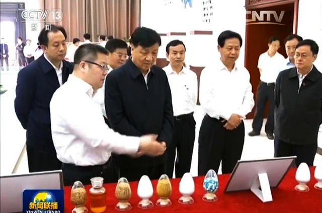 在糧食生產(chǎn)收購倉儲(chǔ)區(qū),就劉云山關(guān)心的倉容規(guī)模、倉庫類型、糧食品種、千噸囤的材料和保糧效果等,陳方一一向劉云山進(jìn)行了匯報(bào)。他說該項(xiàng)目園區(qū)倉容規(guī)模為500萬噸,有835個(gè)千噸囤及108棟平板倉,服務(wù)周邊半徑150公里約8萬戶農(nóng)民,很好地解決了農(nóng)民 “賣糧難”問題,該項(xiàng)目規(guī)模據(jù)考量為世界最大單體糧庫,正在申請(qǐng)吉尼斯世界紀(jì)錄。倉庫現(xiàn)儲(chǔ)糧346.5萬噸,其中140多萬噸水稻,200多萬噸玉米;千噸囤外部是鋼結(jié)構(gòu),內(nèi)部用葦徑制作,不會(huì)變形,防水防潮保糧效果好。在象嶼生化玉米深加工產(chǎn)業(yè)區(qū),各生產(chǎn)車間已建成,設(shè)備也已安裝到位,配套的自備熱電聯(lián)產(chǎn)區(qū)高大的煙筒徐徐冒出縷縷白煙。劉云山很認(rèn)真地詢問熱電廠建設(shè)手續(xù)是否已辦理,電廠的規(guī)模是否夠用?陳方回答說“發(fā)電廠的建設(shè)完全按照國家相關(guān)規(guī)定報(bào)批,手續(xù)齊全,2臺(tái)150噸的鍋爐可提供3萬千瓦時(shí)的用電,能夠保證項(xiàng)目的正常使用。”當(dāng)劉云山聽到陳方介紹說該項(xiàng)目一期60萬噸玉米深加工項(xiàng)目按照常規(guī)建設(shè),工期需要18個(gè)月才能完成,而象嶼以超常規(guī)的速度僅僅用了不到9個(gè)月的時(shí)間便實(shí)現(xiàn)了在本月下旬試車投產(chǎn)的目標(biāo)。他很開心地連稱“好、好!”并詢問:玉米深加工的產(chǎn)品都有什么?陳方告訴劉云山說:“主要產(chǎn)品包括有淀粉、淀粉糖、酒精、發(fā)酵產(chǎn)品、變性淀粉等五大品種。項(xiàng)目全部達(dá)產(chǎn)后預(yù)計(jì)可實(shí)現(xiàn)年產(chǎn)值 60億元,利稅6億元,安置就業(yè)2000人。”聽罷,劉云山又是連聲稱好。