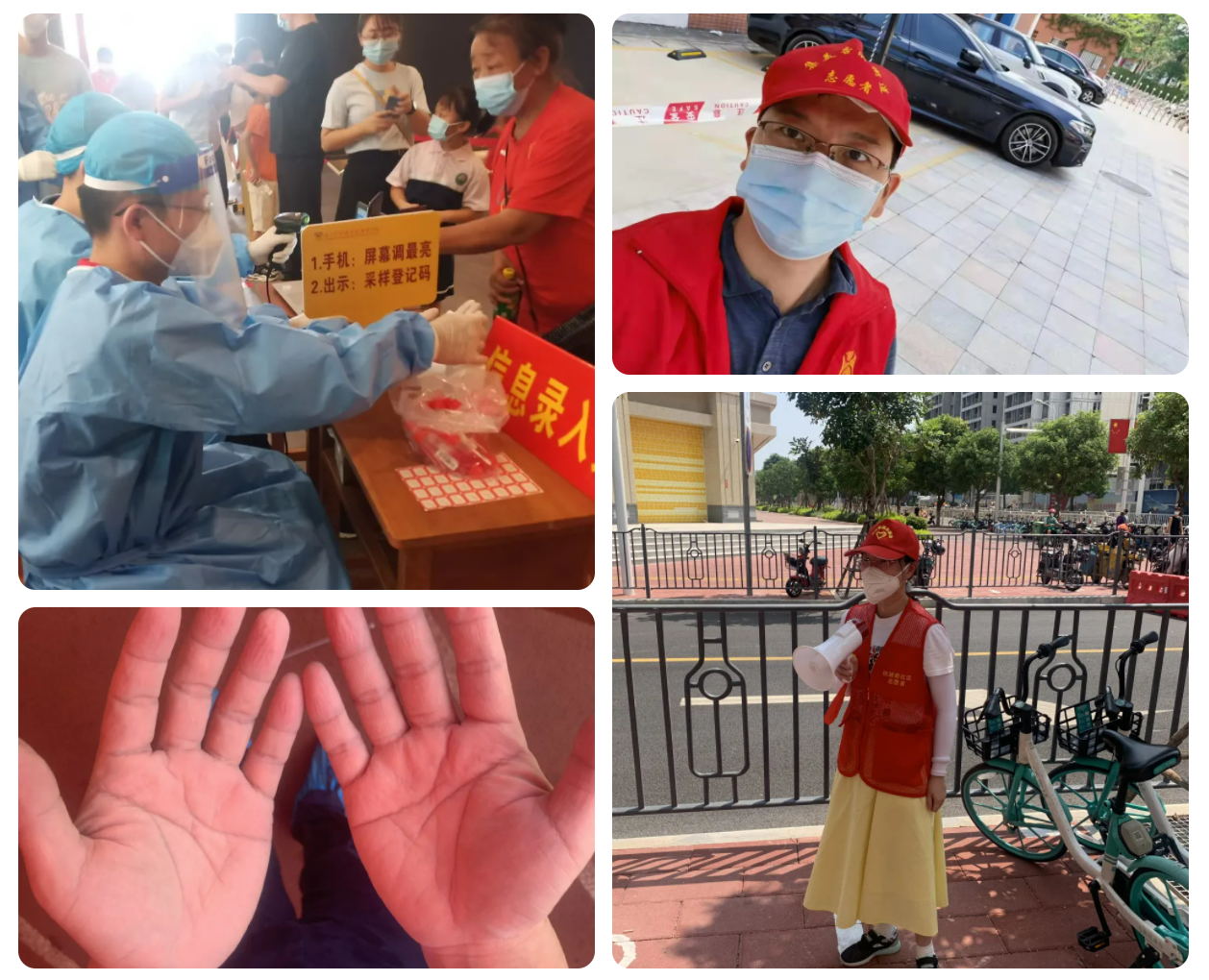 來(lái)自象嶼速傳黨辦的禇穎與她愛(ài)人更是雙方齊上陣,兩人錯(cuò)開(kāi)時(shí)間進(jìn)行志愿服務(wù),一人在外幫助市民進(jìn)行核酸檢測(cè),一人在家照顧孩子,既顧好“小家”也顧著“大家”。當(dāng)她完成志愿者任務(wù),給女兒看了自己的照片后,女兒忽閃忽閃的大眼睛直直地看著媽媽說(shuō):“媽媽,真不容易,應(yīng)該很熱吧!”夫妻二人用親身經(jīng)歷給孩子樹(shù)立了一個(gè)好榜樣!