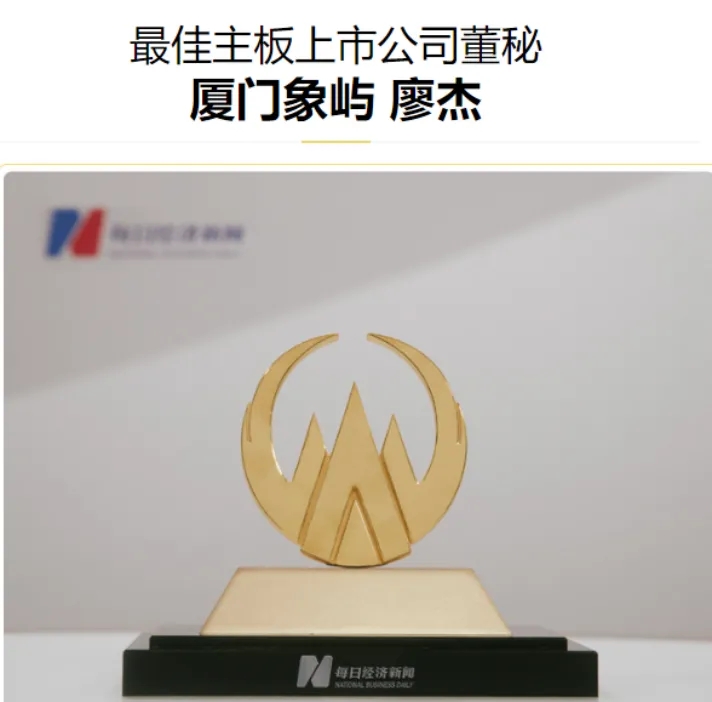 近日,由每日經(jīng)濟(jì)新聞主辦的“2021中國上市公司品牌價(jià)值藍(lán)皮書發(fā)布暨中國資本市場年度榮譽(yù)盛典”成功舉辦。廈門象嶼繼此前入圍“2021中國上市公司品牌價(jià)值活力榜TOP 100”后,再次入圍“2021福建上市公司品牌價(jià)值榜TOP 10”,品牌價(jià)值高達(dá)379.70億元,同時(shí)公司董事會秘書廖杰榮獲“2021最佳主板上市公司董秘”。