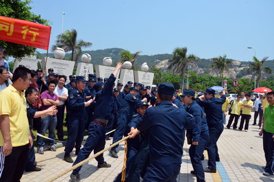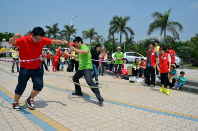 陽光明媚、海浪輕拍,大雨洗滌過的海濱分外清新。員工和官兵代表們絡(luò)繹不絕、配合默契撿拾木棧道沿途垃圾,志愿者紅色馬甲與海軍藍(lán)色制服錯落分布,構(gòu)成海灘一道獨特亮麗的風(fēng)景線。員工子女們也顧不得滿頭大汗,興沖沖地?fù)炱鸨缓K疀_上岸的雜物,用心體會著環(huán)保的理念和勞動的快樂。音樂廣場上的拔河比賽和趣味游戲?qū)F(xiàn)場氣氛推向高潮。來自集團和海軍南方局的16支代表隊奮力拼搏,拉拉隊員激情吶喊,充分展現(xiàn)了廣大員工和現(xiàn)代軍人團結(jié)拼搏的精神風(fēng)貌。經(jīng)過激烈角逐,象嶼碼頭、海軍南方局代表隊拔得頭籌,分獲甲、乙組冠軍。由貿(mào)易、建設(shè)、速傳、資產(chǎn)四家工會精心準(zhǔn)備的趣味游戲吸引了眾多員工及家屬參與,“龍鳳戲珠”、“呼啦行進(jìn)”、“勇闖長繩”、“向快樂出發(fā)”等環(huán)節(jié)異彩紛呈,歡呼聲、叫好聲,高潮迭起。