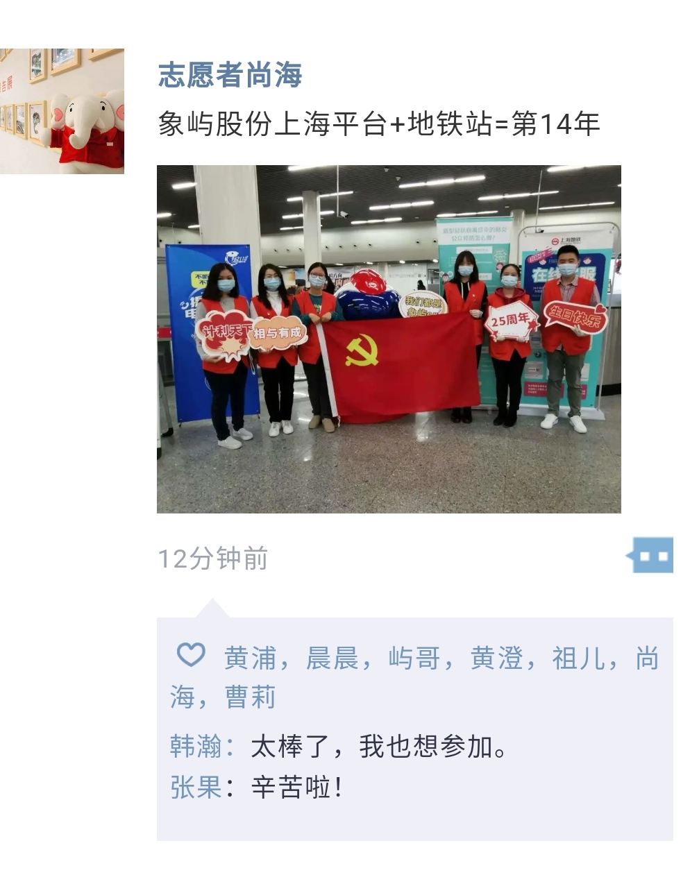 這是象嶼股份上海平臺(tái)志愿者走進(jìn)地鐵站的第14個(gè)年頭。作為城市文明的先行者和宣傳者,志愿者們十四年如一日,堅(jiān)持用真誠(chéng)主動(dòng)的服務(wù)為出行的乘客送上溫暖,讓“象嶼紅”成為地鐵站里一道亮麗的風(fēng)景線(xiàn)。