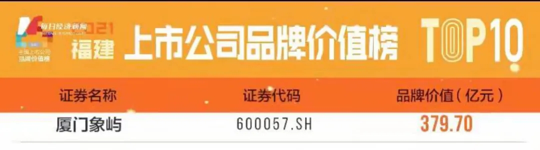 近日,由每日經(jīng)濟(jì)新聞主辦的“2021中國上市公司品牌價(jià)值藍(lán)皮書發(fā)布暨中國資本市場年度榮譽(yù)盛典”成功舉辦。廈門象嶼繼此前入圍“2021中國上市公司品牌價(jià)值活力榜TOP 100”后,再次入圍“2021福建上市公司品牌價(jià)值榜TOP 10”,品牌價(jià)值高達(dá)379.70億元,同時(shí)公司董事會秘書廖杰榮獲“2021最佳主板上市公司董秘”。