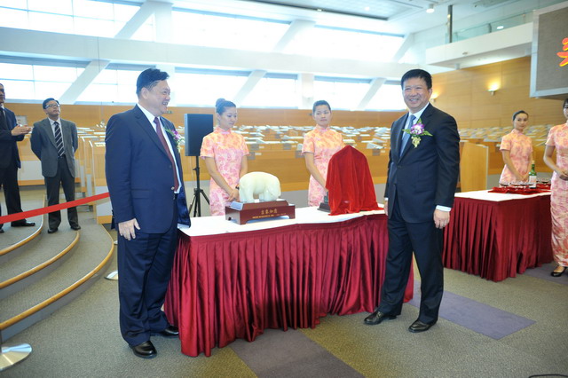 廈門市人民政府葉重耕副市長、廈門市人民政府國有資產(chǎn)監(jiān)督管理委員會主任林杰、廈門象嶼保稅區(qū)管理委員會主任王軍及象嶼股份王龍雛董事長為雄獅點睛認主