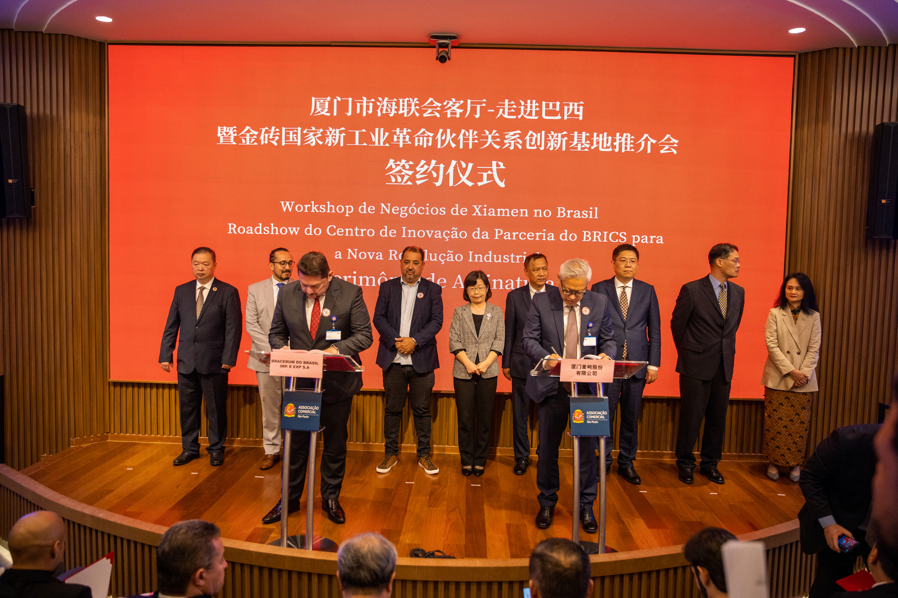 近日,廈門市海聯(lián)會客廳——走進(jìn)巴西暨金磚國家新工業(yè)革命伙伴關(guān)系創(chuàng)新基地推介會在巴西圣保羅舉辦,象嶼股份與BRACERUM DO BRASIL IMPORTAÇÃO E EXPORTAÇÃO S.A(以下簡稱“巴西BD”)在會上簽署戰(zhàn)略合作協(xié)議,廈門市市長黃文輝,毛阿市市長、圣保羅市長聯(lián)盟主席馬塞洛·奧利維拉及雙方有關(guān)領(lǐng)導(dǎo)出席并見證簽約。