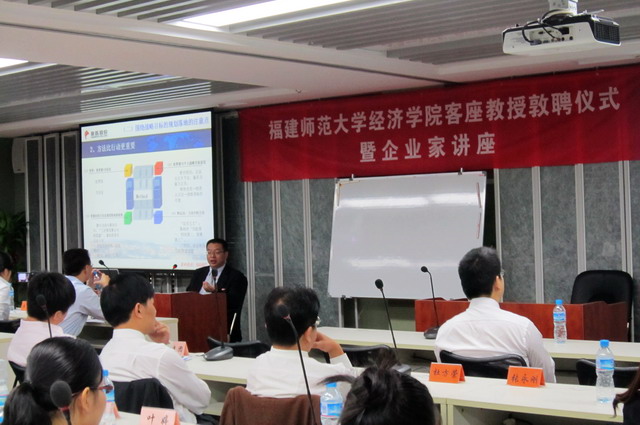 9月24日,象嶼股份總經(jīng)理鄧啟東應(yīng)邀來到福建師范大學(xué)倉山校區(qū)參加“福建師范大學(xué)經(jīng)濟(jì)學(xué)院客座教授敦聘儀式暨企業(yè)家講座”活動。敦聘儀式上,福建師范大學(xué)MBA教育中心常務(wù)副主任章竟代表福師大致歡迎辭,經(jīng)濟(jì)學(xué)院李建建院長為鄧啟東總經(jīng)理佩戴?;詹㈩C發(fā)了聘書。